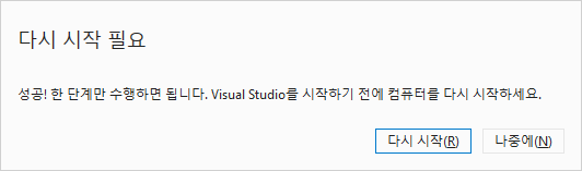 설치가 완료되면 다음과 같이 화면에 나타나 재부팅을 요구합니다.