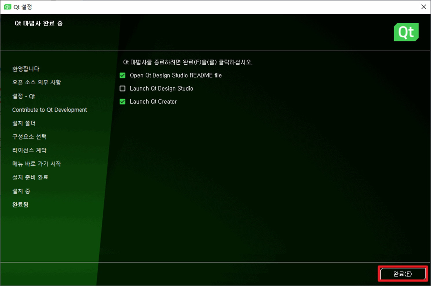 설치가 완료되면 다음과 같이 화면에 나타납니다.