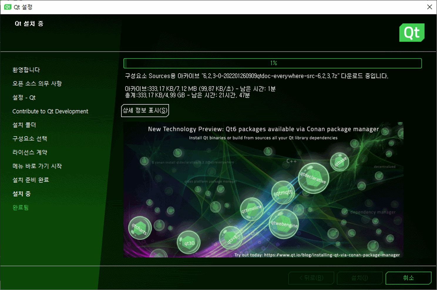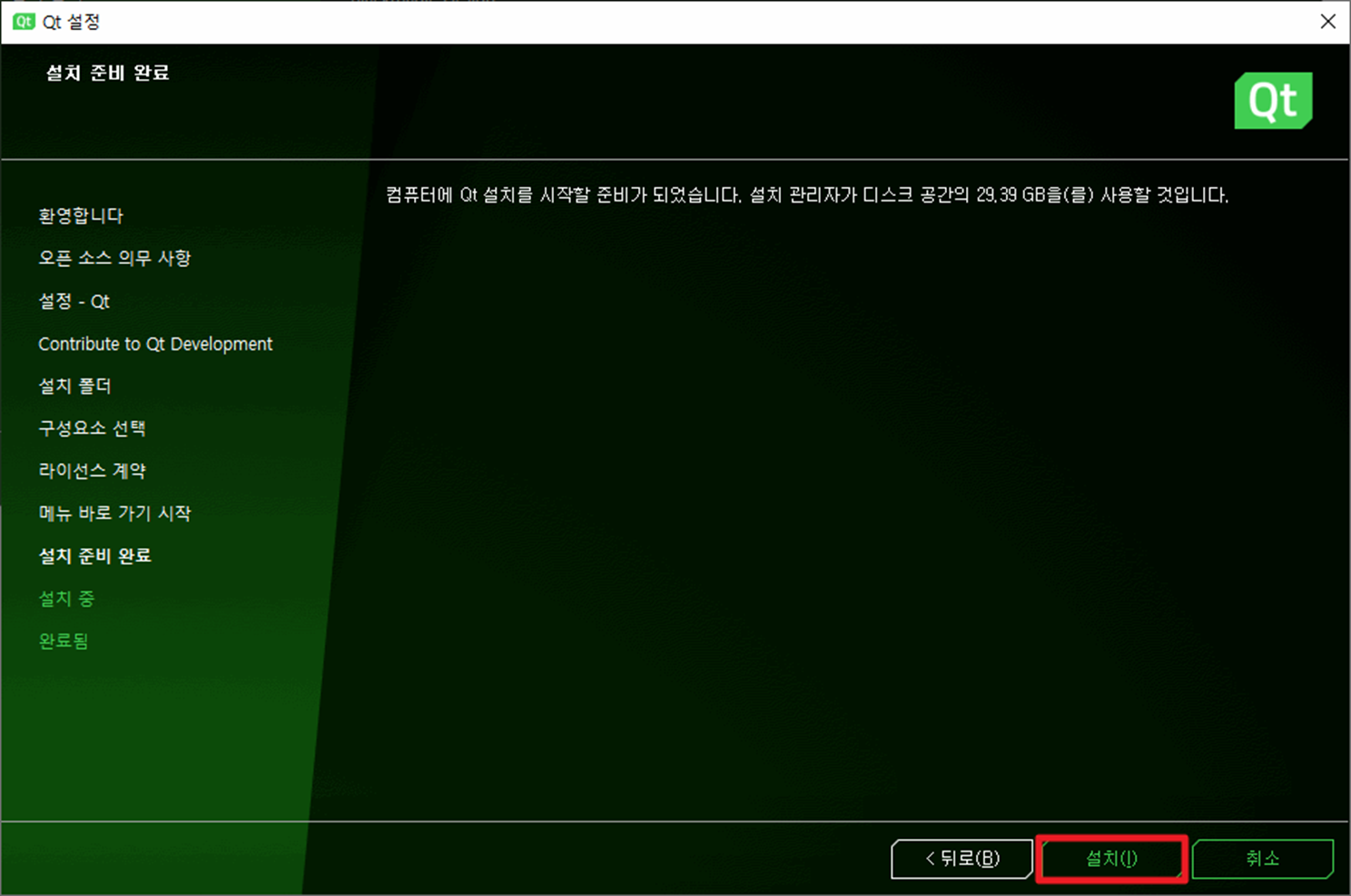 설치를 클릭하면 다음과 같이 화면이 나타나며 설치가 진행됩니다.
