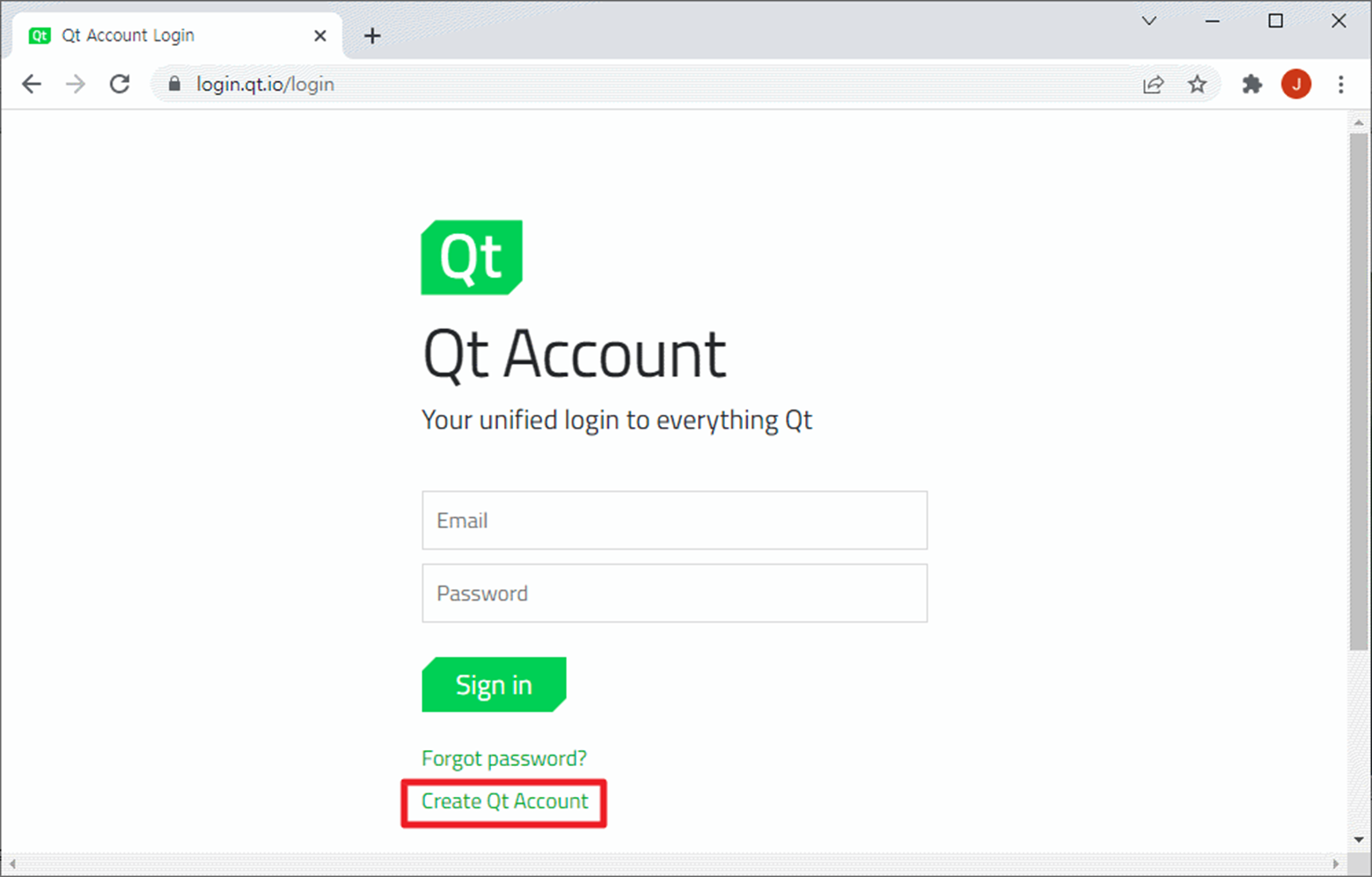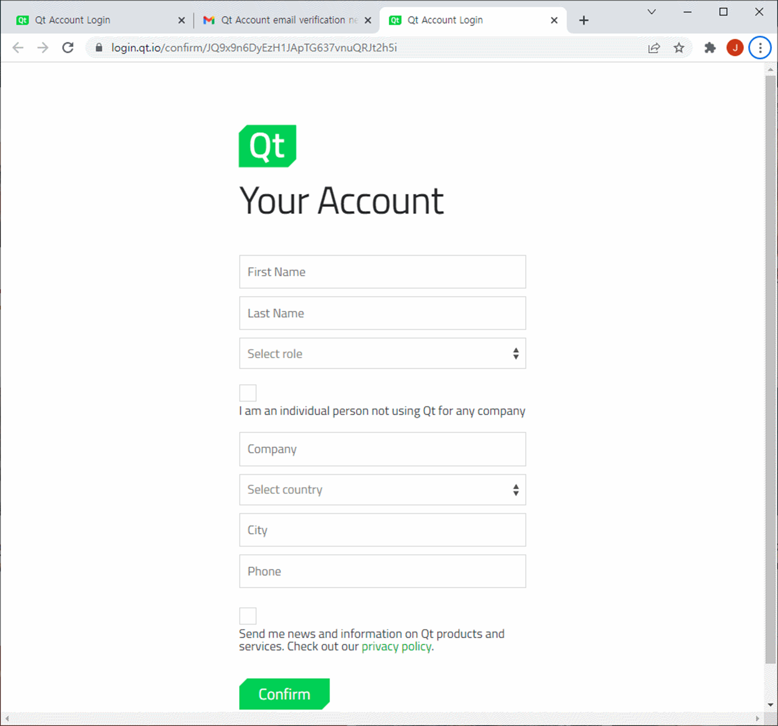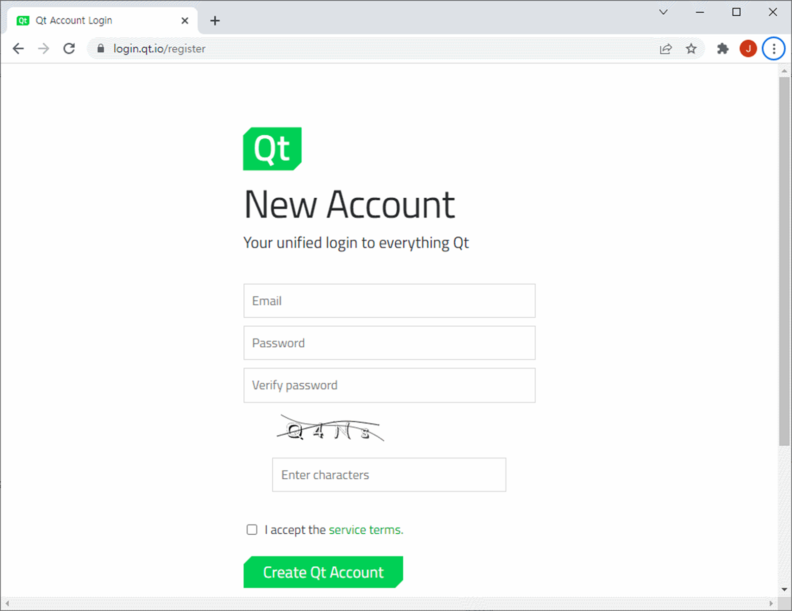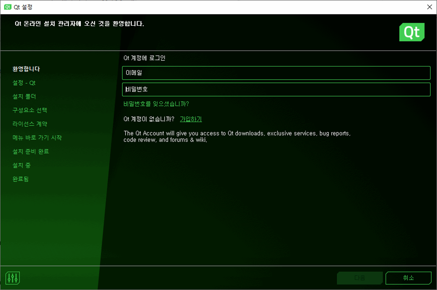 Create Qt Account를 누르면 다음과 같이 화면에 나타납니다..
