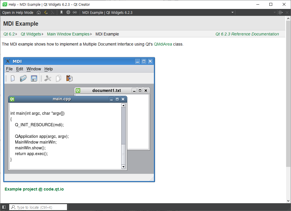 MDI Example을 더블클릭하면 다음과 같이 화면에 나타납니다.