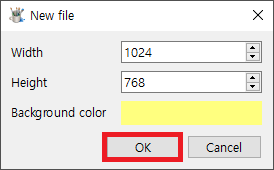 OK 버튼을 클릭하면 다음과 같이 노란색 배경으로 새파일이 화면에 나타납니다.