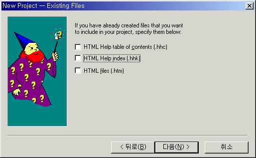 여기에서는 HTML Help Workshop(향후 HHW라 명함)의 모든 내용을 다루지는 않고 프로젝트를 만들어 도움말을 만드는 방법을 간략히 설명합니다. 자세한 내용은 도움말을 참조하기 바랍니다.
