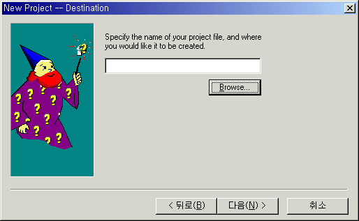 종류를 Project를 선택하고 OK를 선택하면 다음과 같은 대화 상자가 생성됩니다.