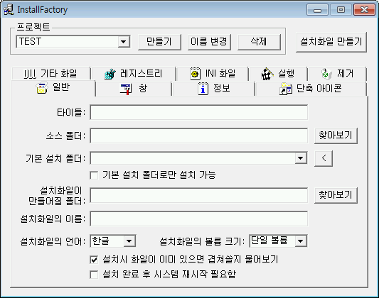 InstallFactory의 가장 큰 장점은 간단한 사용법으로 실행파일 하나로 그 결과물을 만든다는 것입니다.