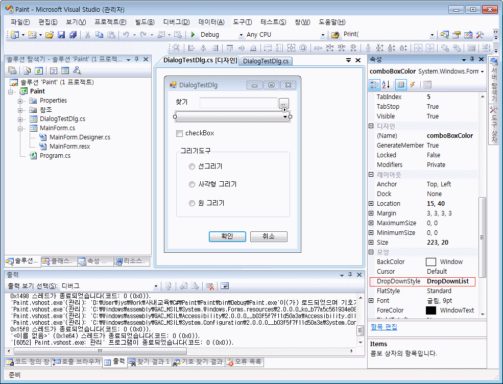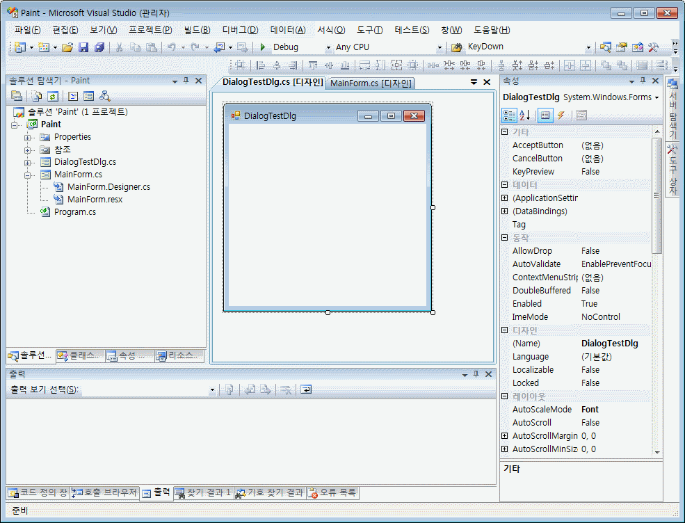 먼저 Paint프로젝트를 열고 대화 상자를 만들기위해 먼저 Form을 만듭니다.