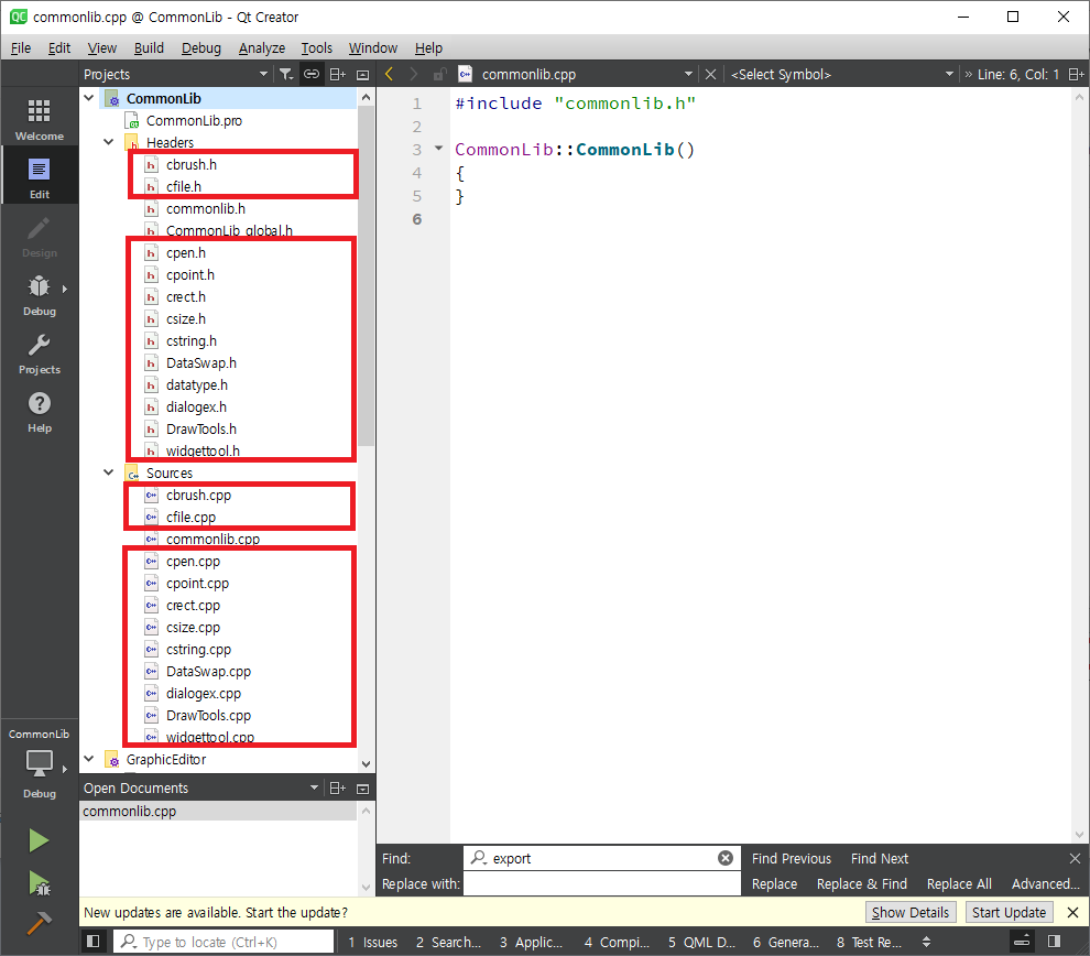 Header 파일들을 열어 DLL에서 구성한 Class라고 알려주기 위해 아래와 같이 CommonLib_global.h를 Include해주고 class 마다 COMMONLIB_EXPORT를 입력해 줍니다.