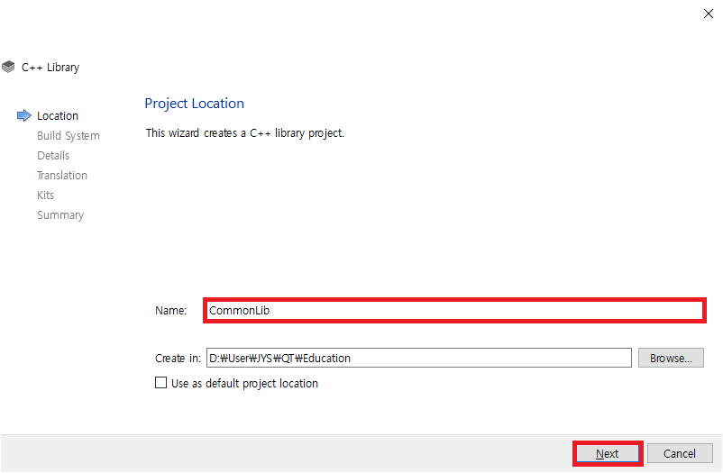 Name에 만들고자하는 DLL 프로젝트 이름인 CommonLib를 입력합니다.