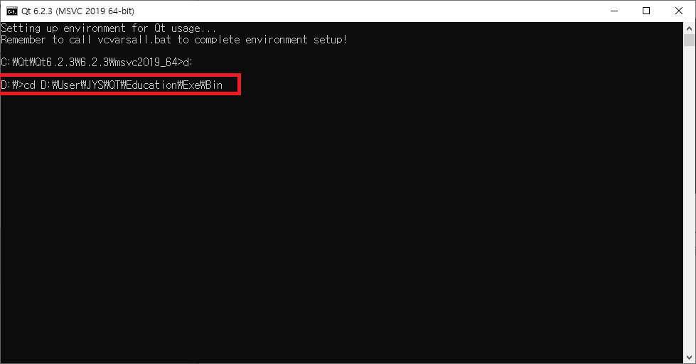 windeployqt GraphicEditor.exe을 입력하고 Enter키를 누릅니다.