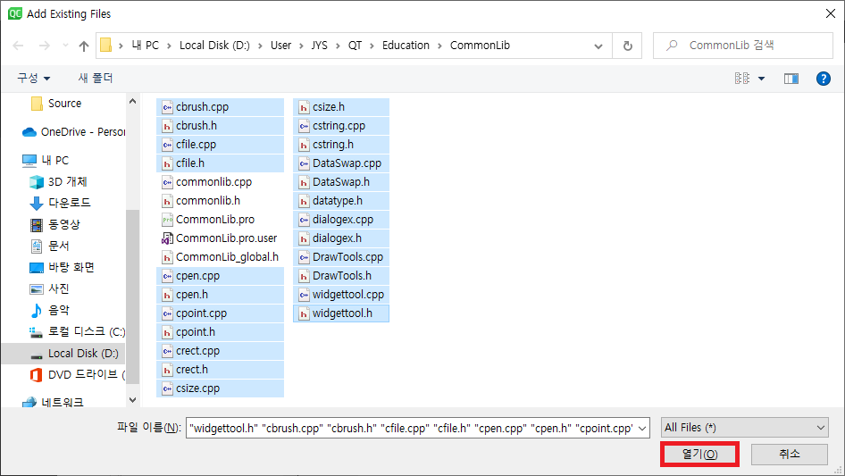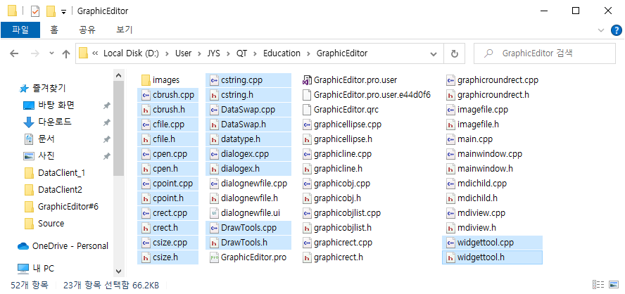 GraphicEditor 프로젝트 폴더로 가서 다음과 같이 DLL로 만들 파일을 선택합니다.