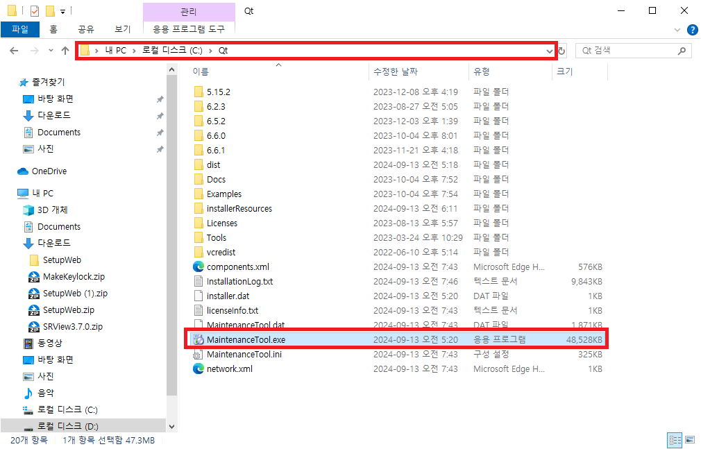QT를 설치한 폴더로 가 MaintenanceTool을 실행하면 다음과 같이 화면에 나타납니다.