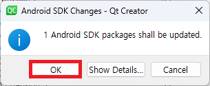Android Device를 선택(앞에서 QT Creator를 재가동 하지 않았으면 보이지 않습니다)하고 Start Wizard를 클릭하면 다음과 같이 화면에 나타납니다.