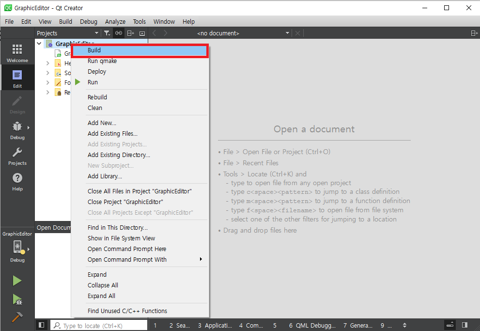 GraphicEditor.pro를 더블클릭하면 다음과 같이 화면에 나타납니다.