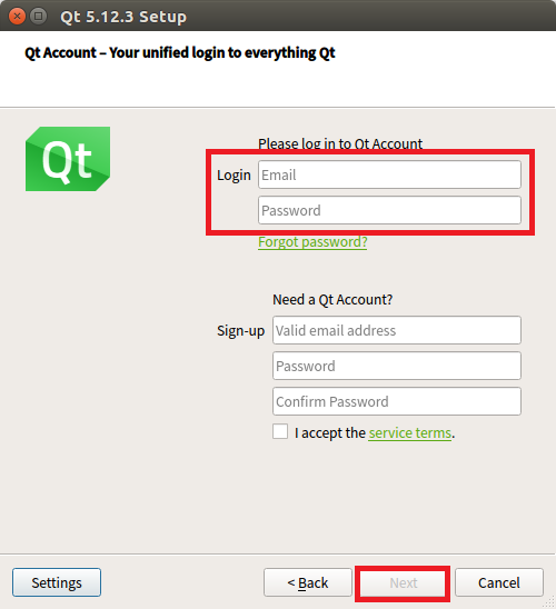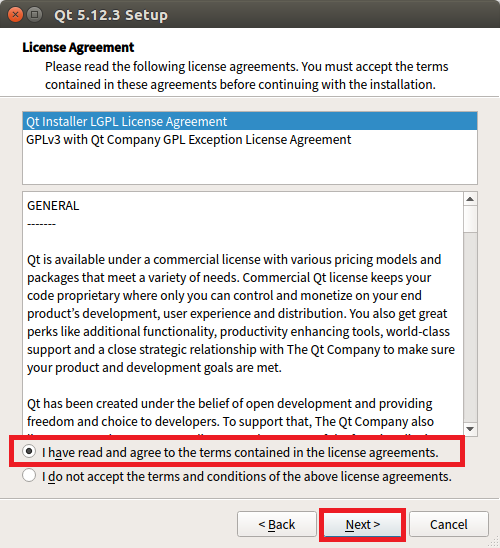 qt-opensource-linux-x64-5.12.3.run을 마우스로 더블클릭하여 실행하면 다음과 같이 화면에 나타납니다.