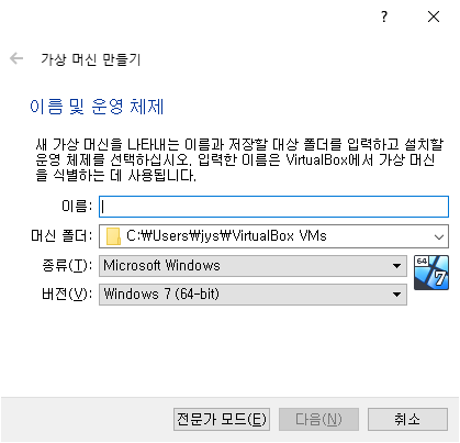 머신 메뉴의 부메뉴 새로 만들기를 실행하면 다음과 같이 화면에 나타납니다.