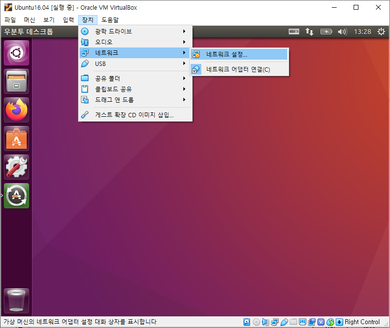 Windows에서 Ubuntu로 접속하기 위해서는 네트워크 설정을 변경해야만 합니다.