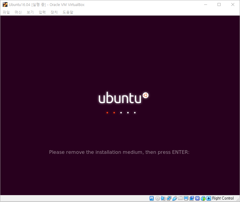 Enter키를 누르면 재부팅이 되며 설치가 완전히 완료됩니다.