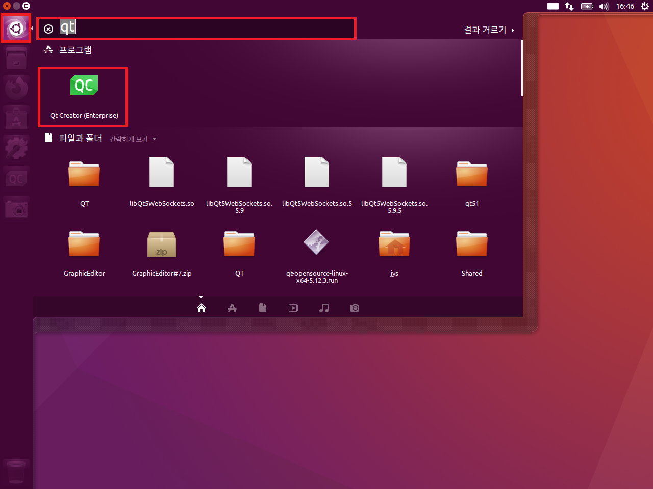 좌측의 Qt Creator 아이콘에서 마우스 오른쪽 버튼을 클릭하여 생성된 팝업 메뉴에서 런처에 고정을 실행하면, Qt Creator를 종료해도 해당 아이콘이 유지되어 나타나므로, 쉽게 실행할수 있게 됩니다.