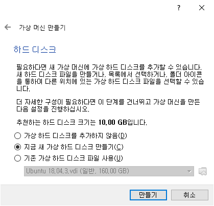 만들기를 선택하면 다음과 같이 화면에 나타납니다.