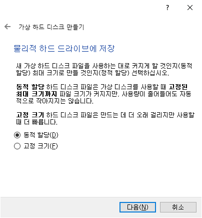 메모리 크기를 설정하고 다음을 선택하면 다음과 같이 화면에 나타납니다.