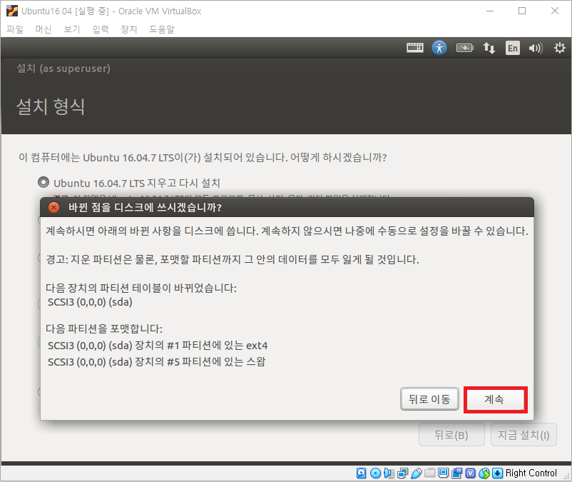 계속을 클릭하면 다음과 같이 화면에 나타납니다.