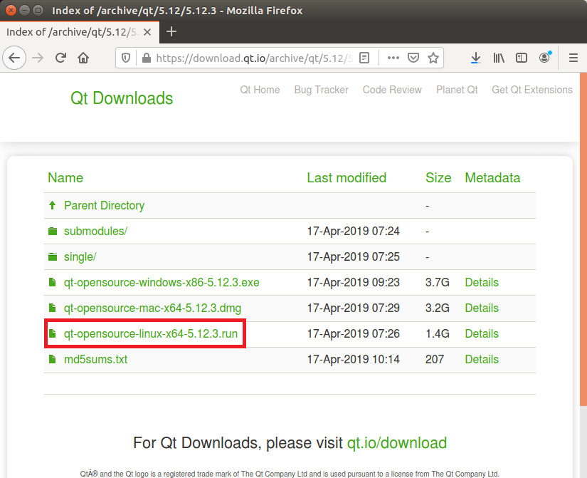 qt-opensource-linux-x64-5.12.3.run을 클릭하면 다운로드가 됩니다.