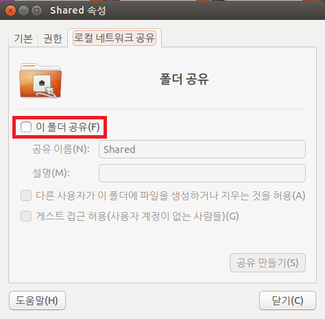 1) 우분투에서 폴더 공유