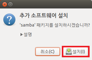 설치 시 설정한 암호를 입력하면 공유를 위한 samba 패키지가 설치됩니다.